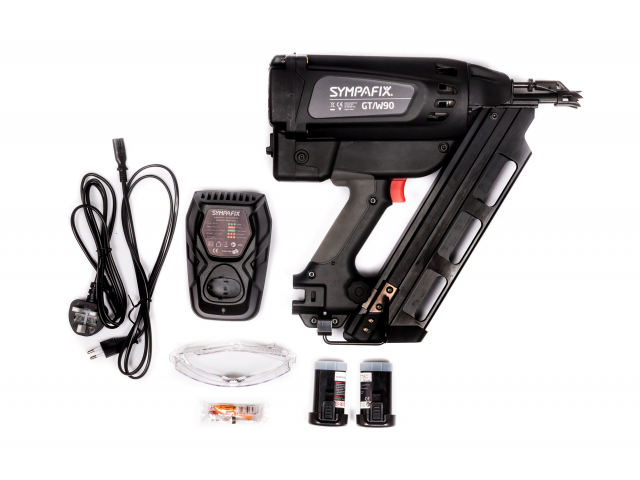- Krachtige GT/W90 gasschiethamer inclusief toebehoren, voor razendsnelle bevestigingen van houtverbindingen zoals panlatten.